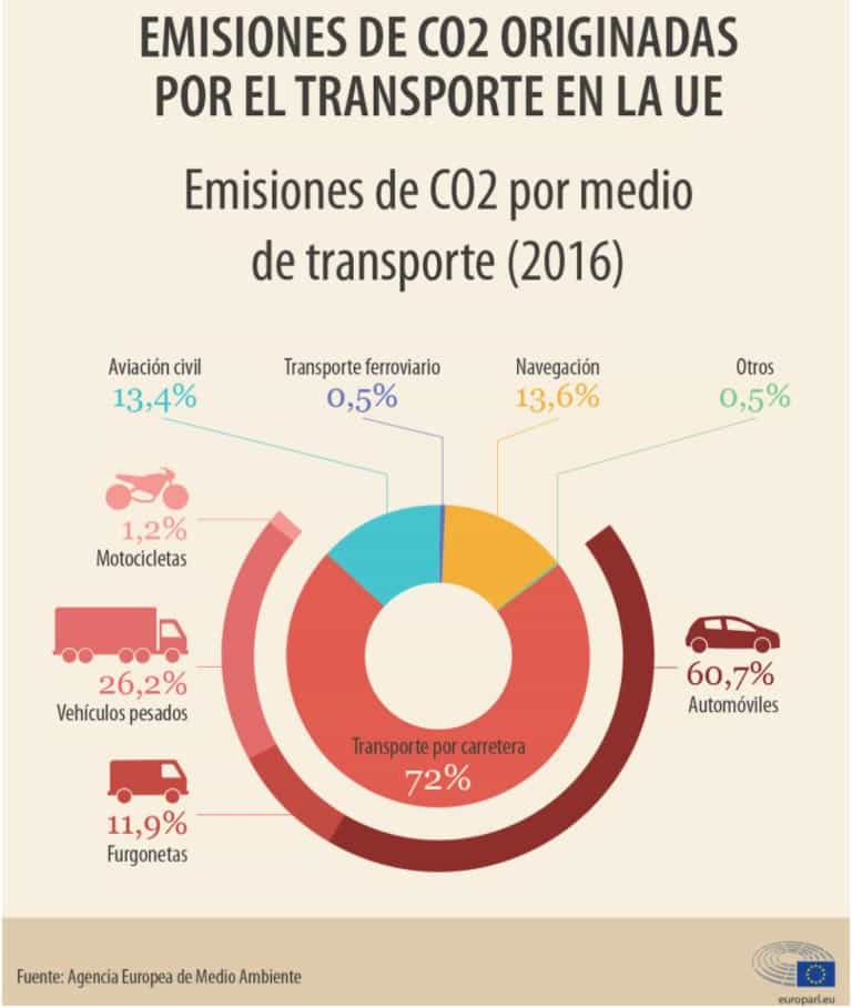 El transporte en Europa está relacionado con el 30% de la emisión de gases de CO2. De ese porcentaje el 78% es a causa del transporte por carretera; siendo los coches los más contaminantes dentro de ese espacio con el 60,7% del total de emisiones.